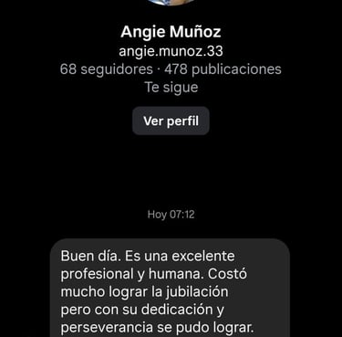 "Marisa es una excelente profesional. Costó mucho lograr la jubilación pero con su dedicación y perseverancia se pudo lograr"